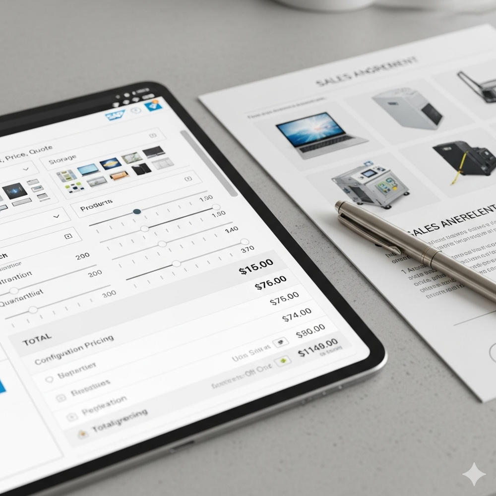 Sales Optimisation 4.0: Do business faster – configure offer prices individually – reach more customers – motivate sales through flexible and efficient offer price configuration, you can maximize your business dealings and thereby secure your margins. You can also optimize the contract conclusion process via a custom-fit Contract Cycle Management. In a word, with SAP CPQ you get the optimal complement for your sales processes